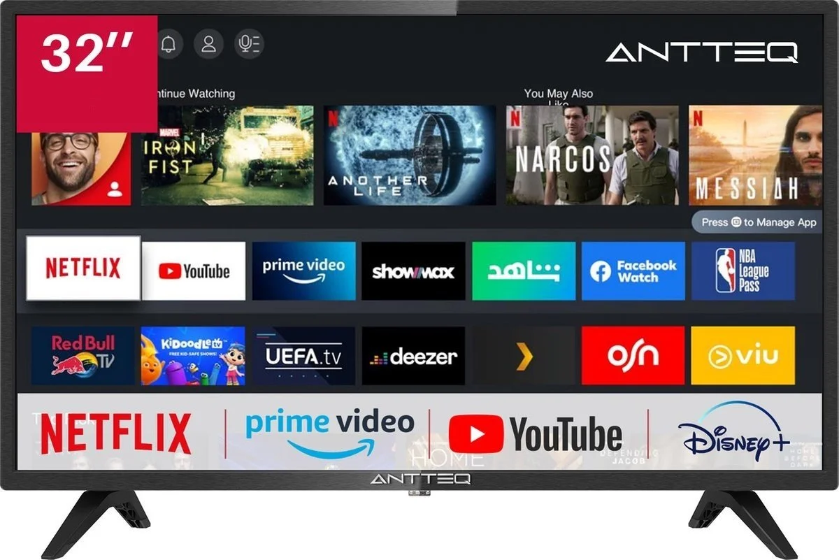 Телевізор 32" Antteq AV32 / HD / 60 Гц / LCD / Smart TV / Wi-Fi / Bluetooth / T2 Уцінка