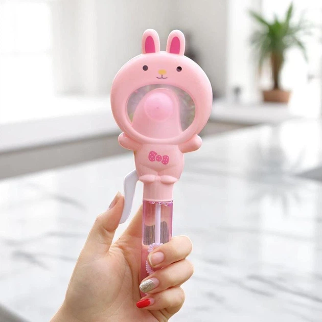 Мильні бульбашки з механічним вентилятором 2в1 "Зайчик", 21см, Рожевий