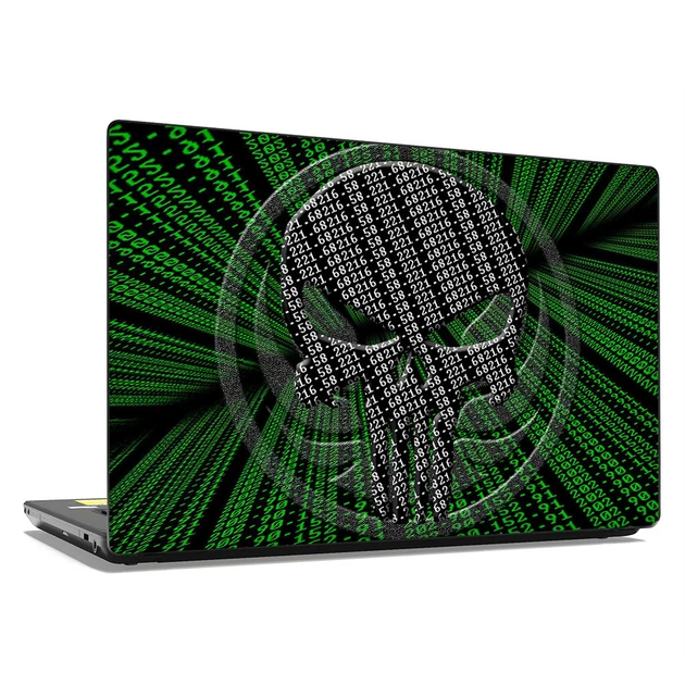 Вінілова наклейка на ноутбук з діагоналлю 15.6" (380х250мм) - Череп у стилі матриці