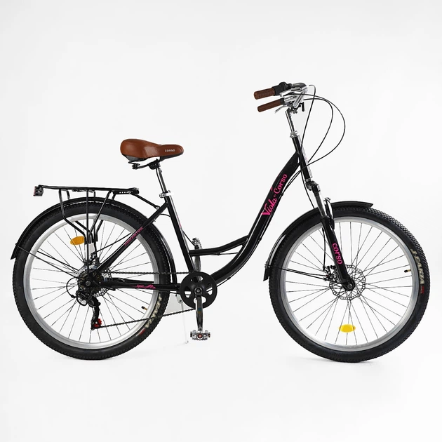 Велосипед міський Corso VL-26520 «Viola» (колеса: 26``, рама: 17"/сталева, 21 швидкість, гальма дискові, багажник)
