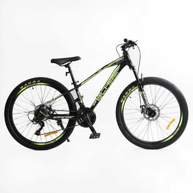 Спортивний алюмінієвий велосипед Corso "BLADE" BD-26204 колеса 26 дюймів Shimano 21 швидкість чорно-салатовий