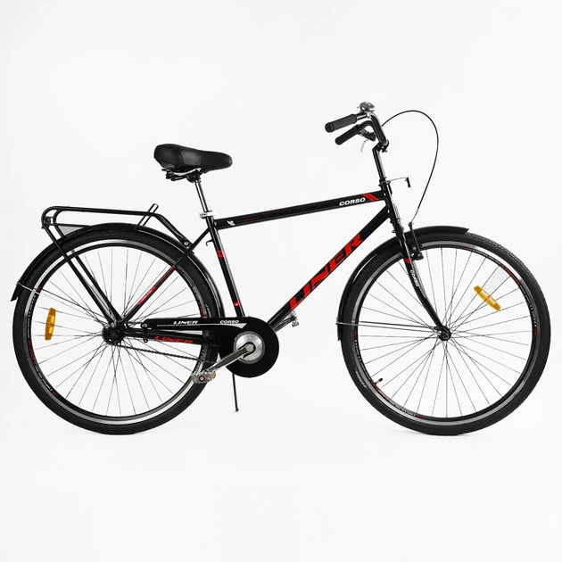 Велосипед міський 28 дюймів Corso Liner з багажником, рама 21" (Чорний)
