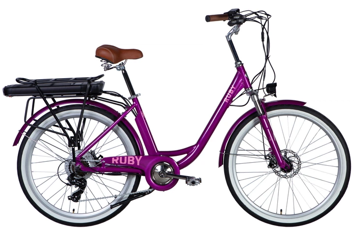 Велосипед з електроприводом 26" AL Dorozhnik eRUBY DD FR рама-17" 48B 12.5А*г 500Вт пурпуровий YS 7809 2025 (ELB-D-26-261)