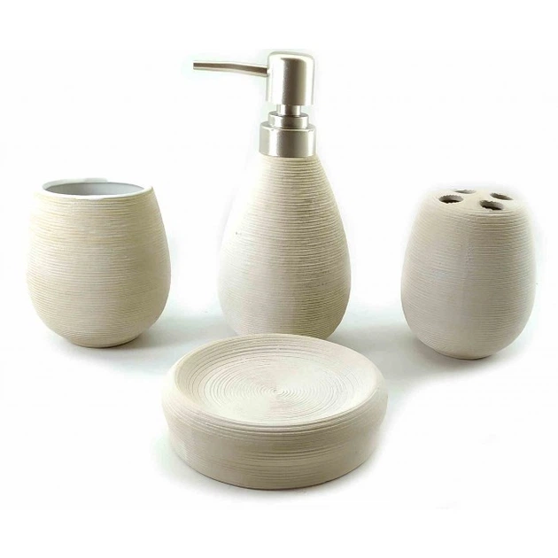 Набір аксесуарів "Beige Classic" для ванної кімнати: дозатор для мила, склянка, мильниця 7,5x17,5 см, 7,5x11 см, 11,5х8,5х3,
