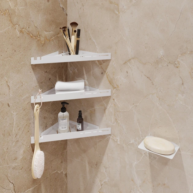 Набір для ванної кімнати «LINE»: кутова полиця (3 шт.) + мильниця Білий