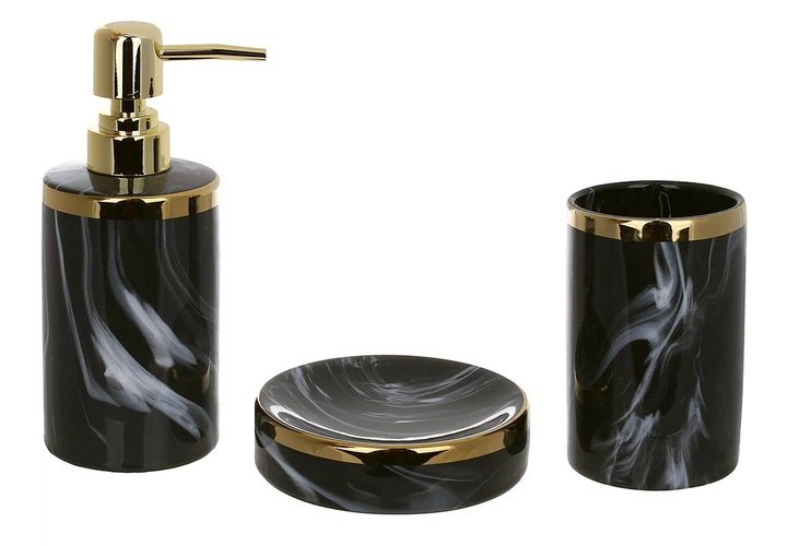 Набір аксесуарів для ванної Bona Di 851-338 3 предмети чорний мармур із золотом