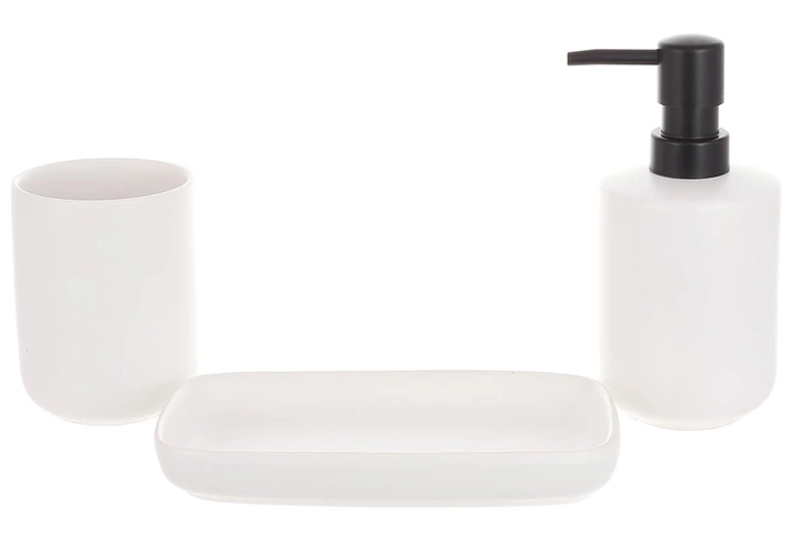 Набір для ванної (3 предмети): дозатор 380 мл, склянка для зубних щіток 320 мл, мильниця, колір — біло-пісочний
