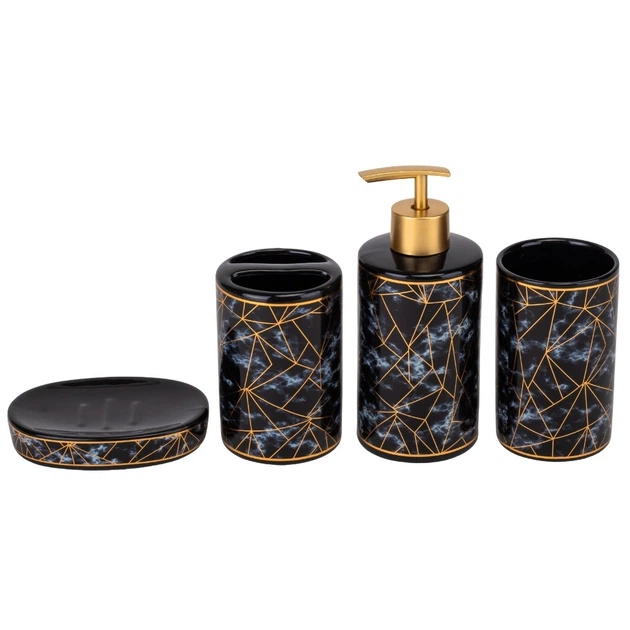 Набір для ванної кімнати 4 предмети 9190-015 кераміка чорний з візерунком