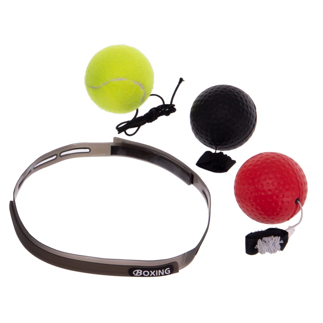 Тренажер для боксу fight ball Zelart пов'язка на голову +3 м'ячі різної ваги колір чорний-червоний-зелений BO-1086