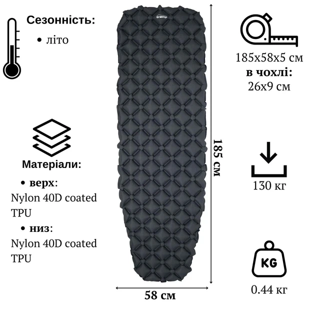 Килимок надувний туристичний 185x58x5 см Tramp (UTRI-028-dark-grey)