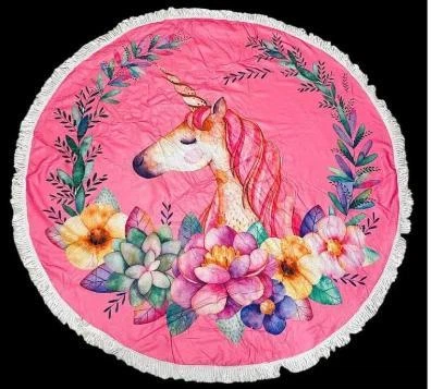 Кругле пляжне покривало "Єдиноріг у квітах", 150 см