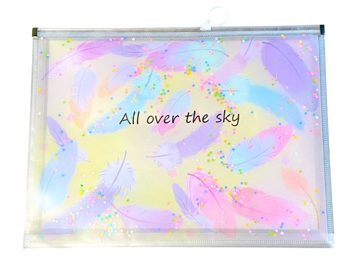 Папка для зошитів А4+ на змійці "Сипучі блискітки-Пір'я" 33 х 24,5см (2400-А4)