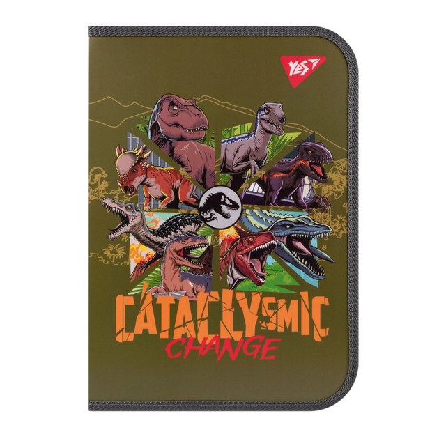 Папка факультативна пластикова на блискавці Jurassic World з кишенею хакі A4 YES (492224)