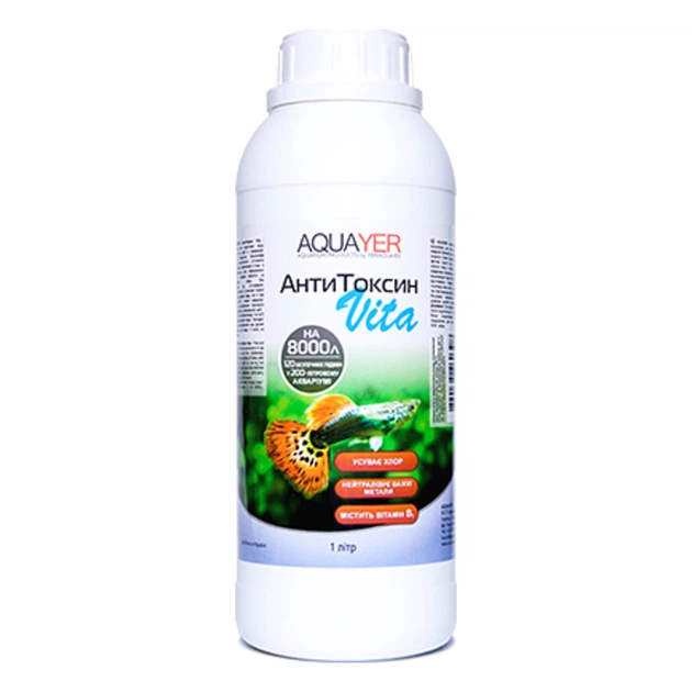 Засіб для підготовки води AQUAYER Антитоксин Vita 1 л – проти хлорки та важких металів
