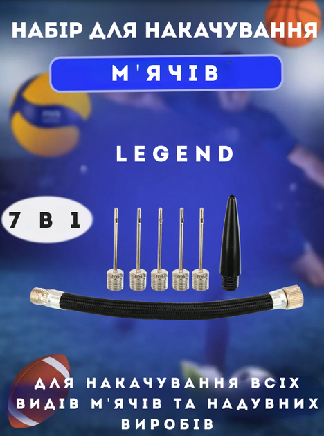 Набір для накачування м'ячів Legend W2016AP-B (5 голок, шланг, насадка для насоса)