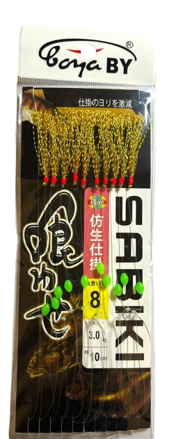 Самодур Boya BY SABIKI № 8 (10 гачків) золотий люрикс, світлонакопичувальна намистина (ставрида, сарган)