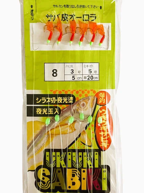 Самодур UKLUKI SABIKI #330 №8 (6 гачків) червоний плавець, світлонакопичувач. намистина (ставрида, сарган, луфар)