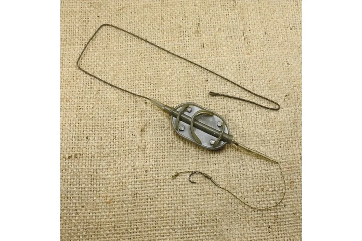 Фідерний монтаж 80 грам, з посиленим протизакручувачем, овальна годівниця, один гачок