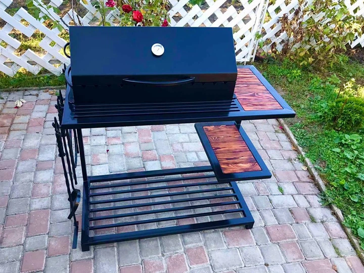 Мангал - барбекю 4 мм на 12 шампурів з дровницею та двома решітками-гриль
