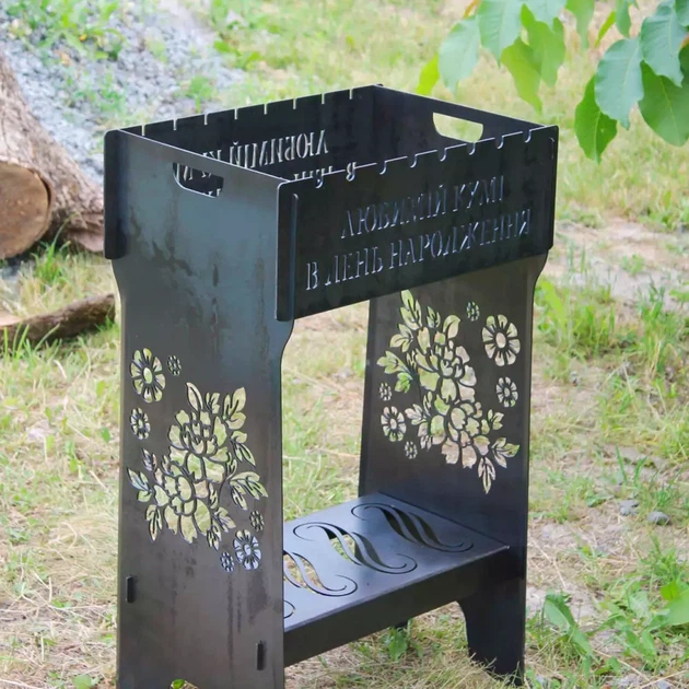 Мангал розбірний високий з індивідуальним гравіюванням з нержавіючої сталі на 8 шампурів.