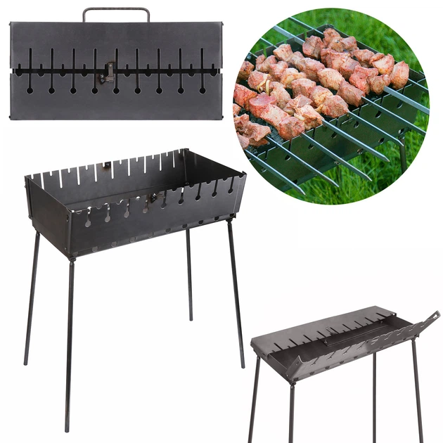 Компактний розбірний мангал валіза вогник 3 мм на 12 шампурів для шашлику