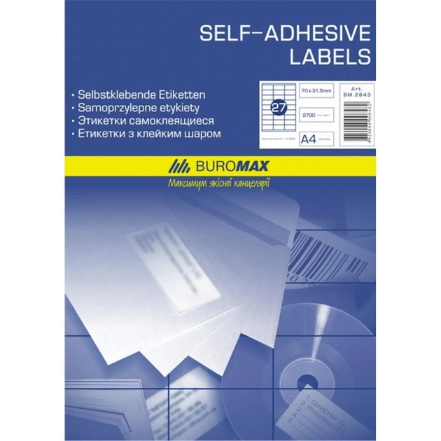 Етикетки самоклеючі Buromax BM.2837 70х42.4 мм-21 шт/100 л