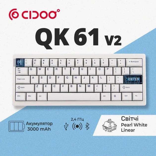 Клавіатура бездротова Сidoo qk61 V2 Біла