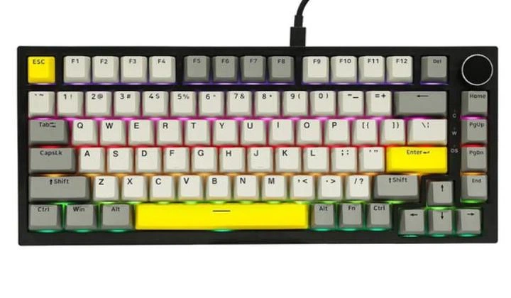 Клавіатура Ajazz AK820 Ігрова Механічна Дротова 75 Сіро-Жовта RGB підсвітка