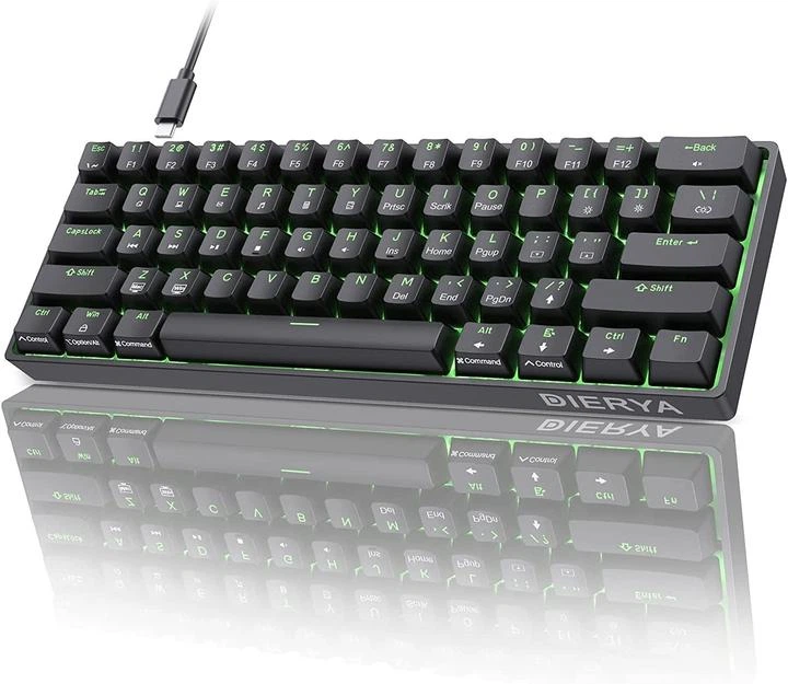 Механічна ігрова клавіатура Dierya 60 з механічними перемикачами Clicky, Type-C, 61 клавіша (розкладка ENG-UA, QWERTY) чорни