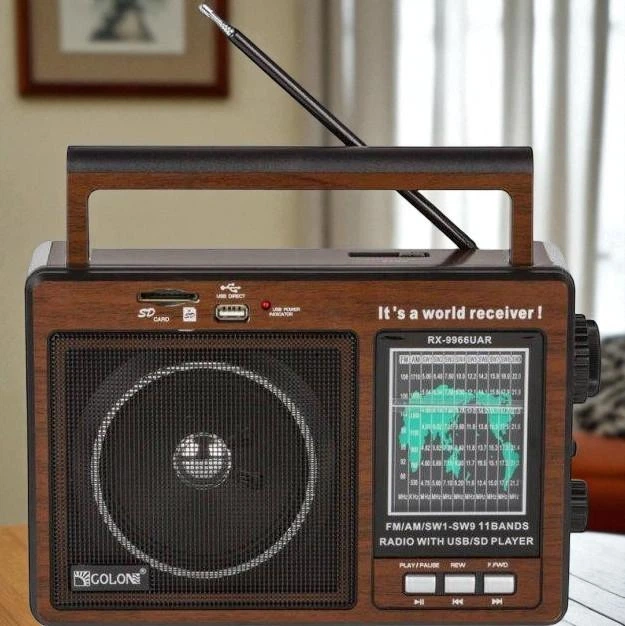 Акумуляторний радіоприймач GOLON FM/AM/SW/AUX із МР3 плеєром, переносне, настільне радіо Коричневий (6699)