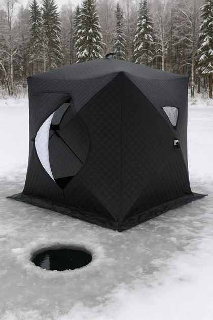Намет зимовий утеплений куб рибальський 210х210 чорний палатка для риболовлі туризму кемпінгу подорожей намет для зими Lugi