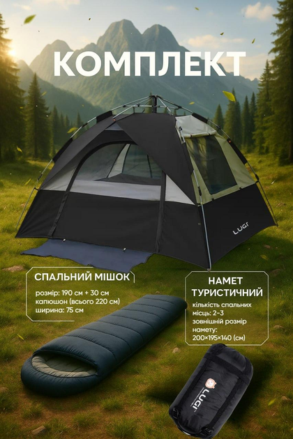КОМПЛЕКТ Намет туристичний автоматичний 235235 см 2-3 місний вологозахистний палатка з тентом і москітною сіткою+Спальний мі