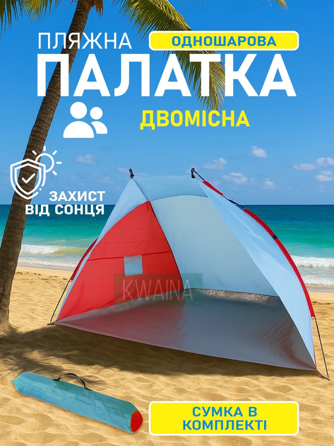 Пляжний намет тент двомісний легкий каркасна напівсфера, захист від сонця та дощу, 210150100 см, синьо-червоний