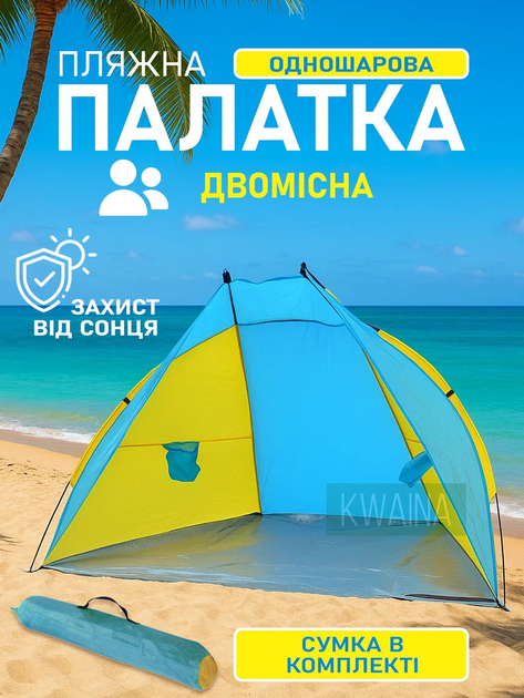 Пляжний намет тент двомісний легкий каркасна напівсфера, захист від сонця та дощу, 210150100 см, жовто-синій