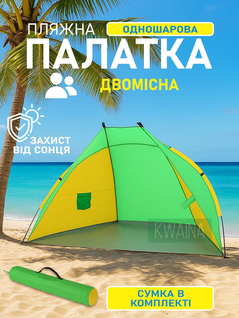 Пляжний намет тент двомісний легкий каркасна напівсфера, захист від сонця та дощу, 210150100 см, жовто-зелений