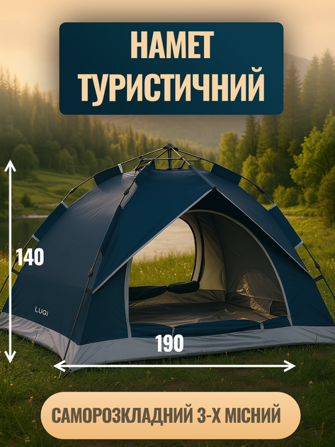 Автоматичний намет для кемпінгу 190х190х140 см намет туристичний синій