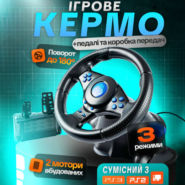 Ігровий кермо 4 в 1 з педалями та коробкою передач для гри на комп'ютері PS2 PS3 ПК симулятор з вібрацією