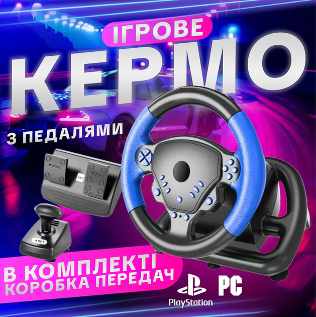 Ігрове кермо 4 в 1 з педалями та коробкою передач для гри на комп'ютері PS3 PS4 симулятор з вібрацією