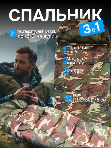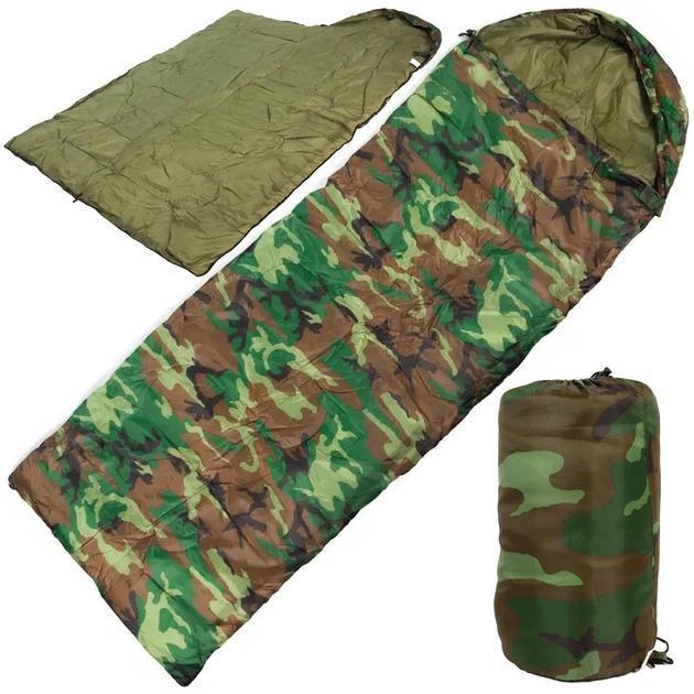 Туристичний утеплений спальний мішок у формі конверта водонепроникний мішок ковдра з капюшоном в чохлі до - 5°C, камуфляж
