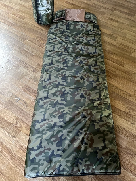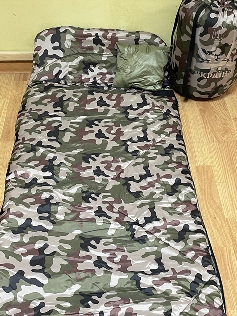 Спальний тактичний мішок з компресійним мішком і подушкою демісезонний до мінус десяти камуфляж