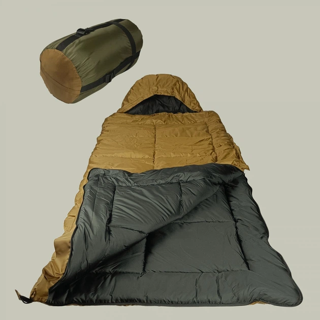 Спальник тактичний зимовий стьобаний від +5 до -20 Спальний мішок-ковдра 210х85 см Койот