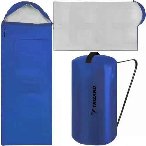 Спальний мішок Trizand Ripstop 210T водонепроникний, синій, туристичний, 2в1 ковдра + спальник, з капюшоном, до 0,93 кг