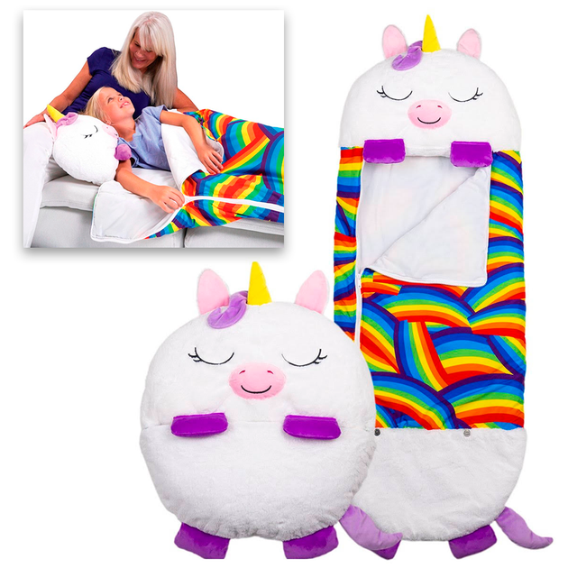 Спальний мішок для дітей 130х50 см 3в1 Веселка, м'яка іграшка-подушка трансформер для сну та відпочинку