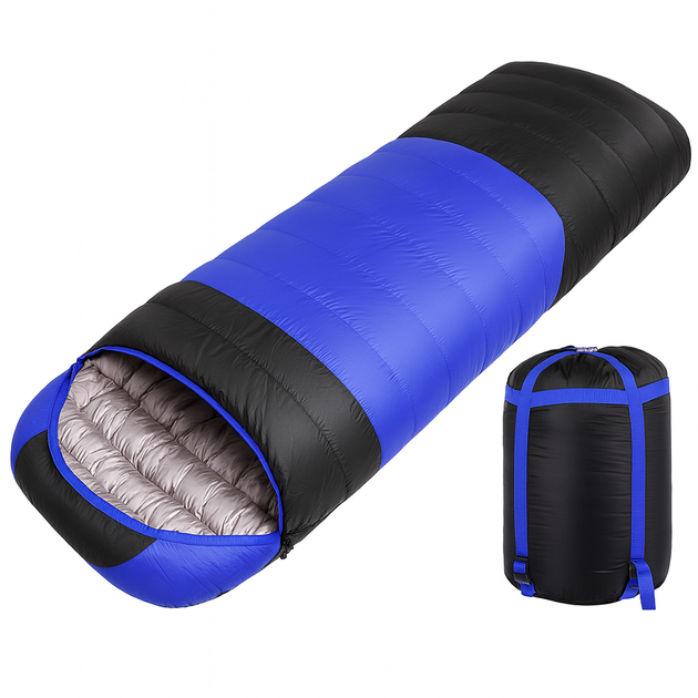 Туристичний спальний мішок-ковдра 1.45 кг Sleeping Bag Solve +5°C 210*75 см KT7004101, чорний з синім