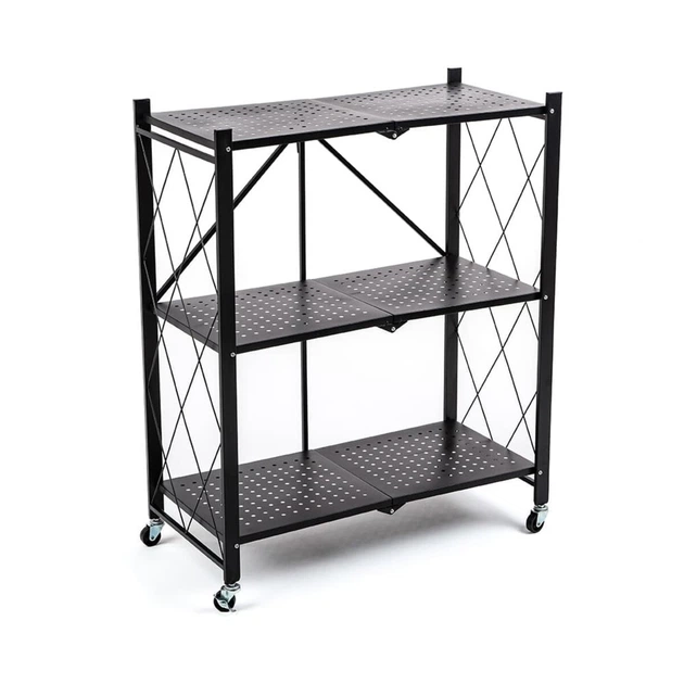 Стелаж мобільний триярусний універсальний розкладний з нержавіючої сталі 89*72*34см SW-00002097 Чорний