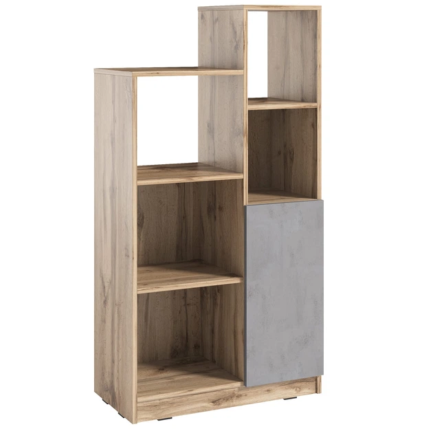 Стелаж P-1 на 7 комірок в кольорі Апалачи + Бетон Тефра з дверцятою, Ш 680 / В 1300 / Г 370 мм