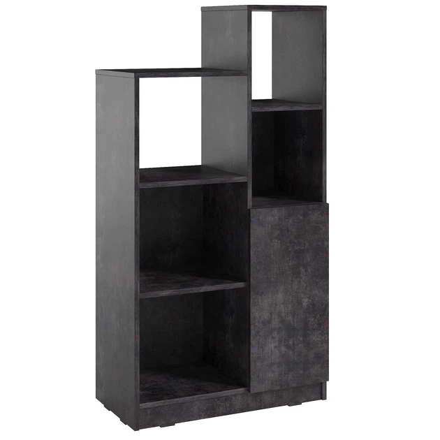 Стелаж P-1 на 7 комірок в кольорі Бетон Темний з дверцятою, Ш 680 / В 1300 / Г 370 мм
