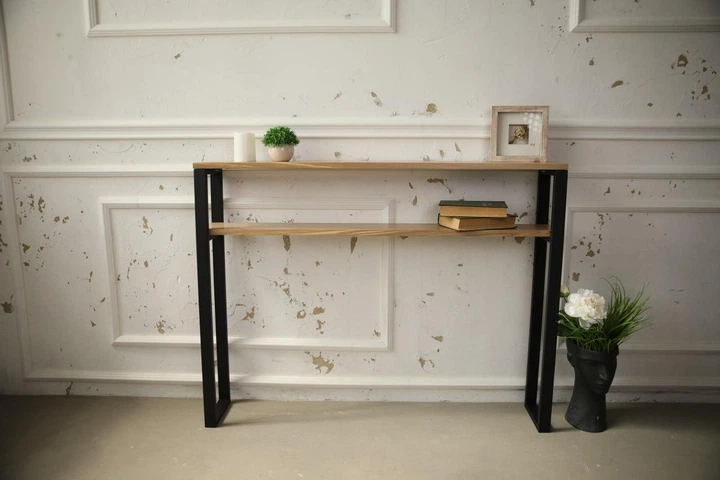 Консоль розбірна в стилі лофт, полиця підлогова з дерева та металу, декор кімнати 120х20х90 см (ML-101.6)
