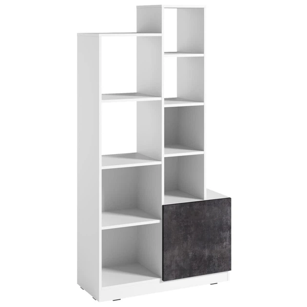 Стелаж P-3 на 10 комірок в кольорі Білий + Бетон темний з дверцятою, Ш 840 / В 1650 / Г 370 мм
