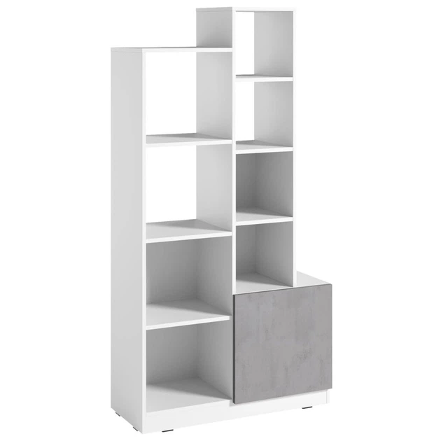 Стелаж P-3 на 10 комірок в кольорі Білий + Бетон тефра з дверцятою, Ш 840 / В 1650 / Г 370 мм